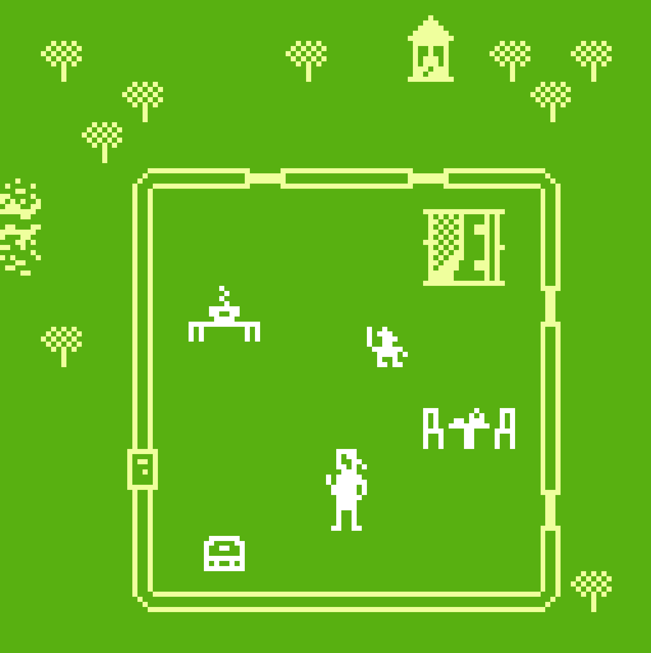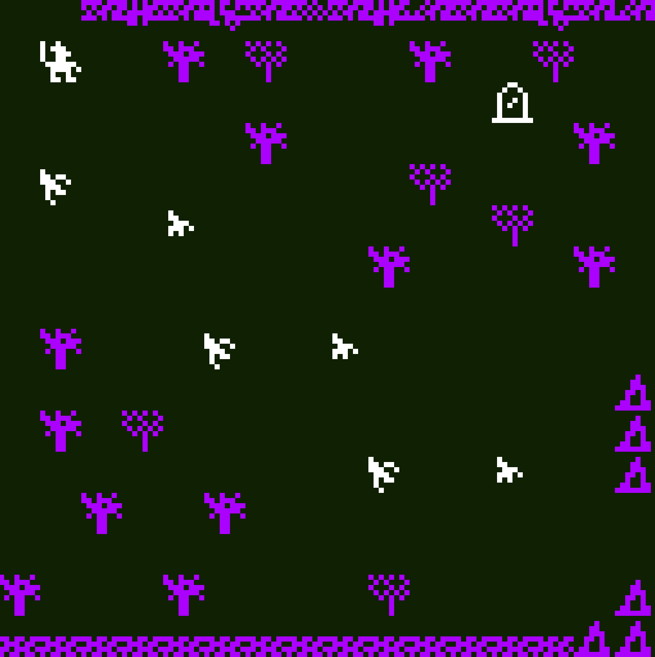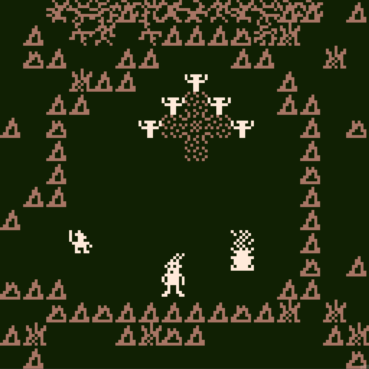 This is my first time making a game. Using Bitsy was a great way to jump right in and see it to the end. I tried starting by learning Godot, and while I liked working with that engine, I was getting overwhelmed and never made it very far into creating something. Everything in The Hunt was created using the stock in-browser Bitsy editor with no add-ons.